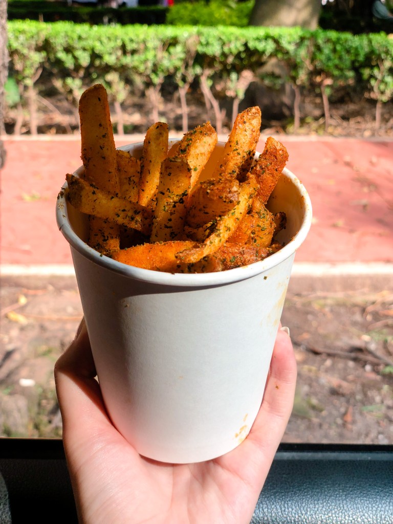 Ubicado en frente del Parque México, en la Colonia Condesa, se veía a lo lejos un lugar con una fila enorme para pedir. Nuestra sorpresa fue que ahí era nuestro destino y pese a nuestra hambre, teníamos que esperar un tiempo incalculable para pedir nuestros alimentos.